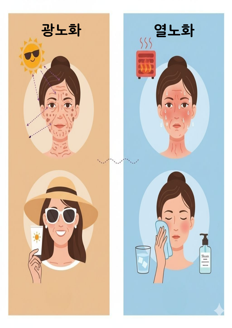 🌞 당신의 피부는 뜨거우신가요? 열노화 vs. 광노화의 차이와 완벽한 예방법